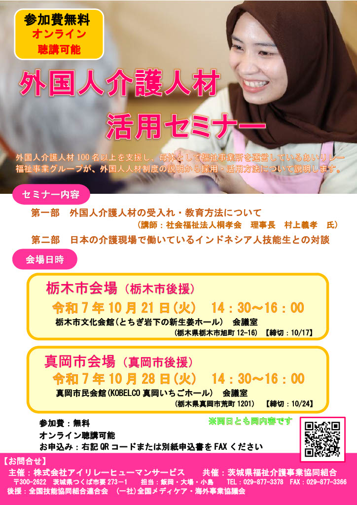 3. 外国人介護人材活用セミナーの開催のお知らせ 2025年10月(栃木県栃木市、真岡市開催)